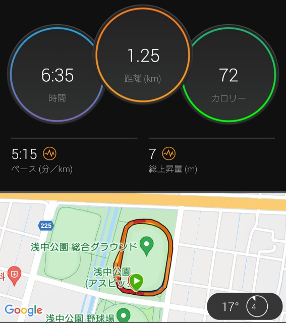ランニングというにはおこがましいくらいの時間ですが、ペースを意識している余裕はまったくなく。