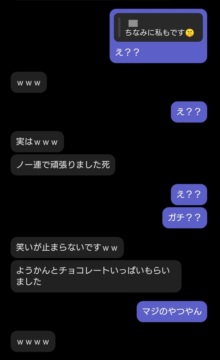 今日後輩が「昨日休んでてすみません」ってチャットしてきたから、「いいよ、俺も休んでたから(マラソンで死んでた)」って返したら急に「私もです」って。